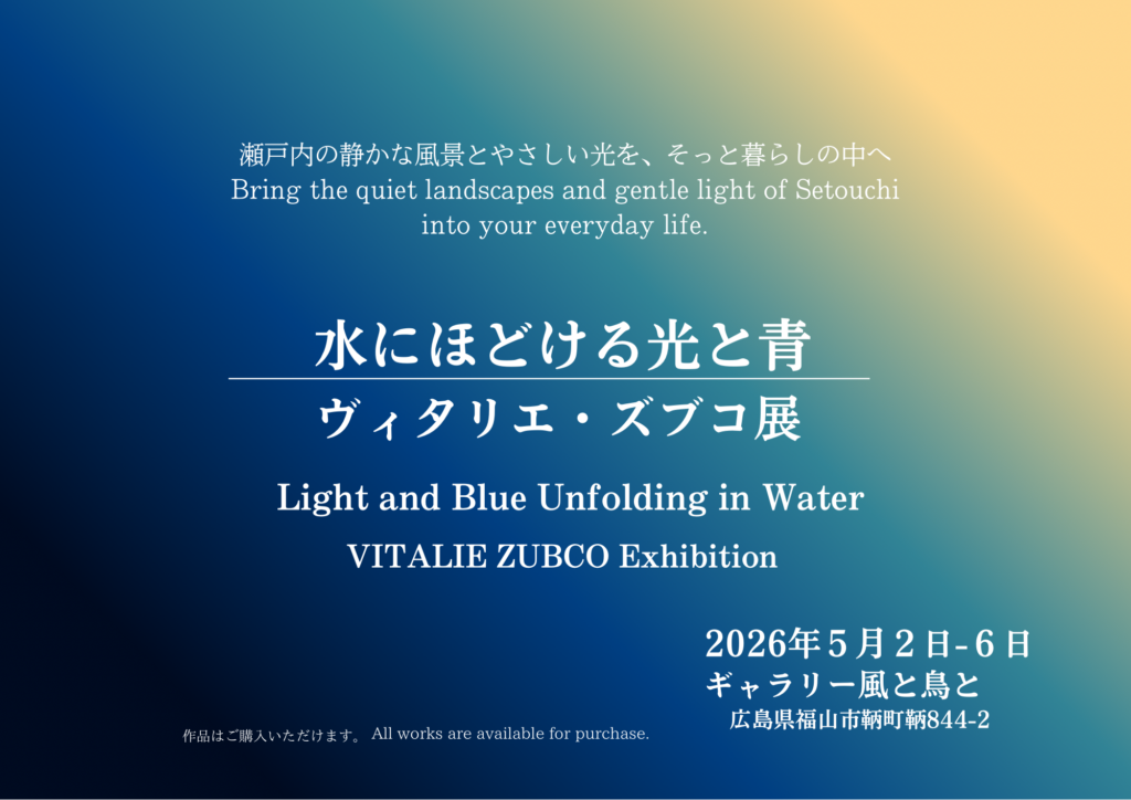 今年で3回目の鞆の浦での展覧会となる、2026 VITALIE・ZUBCO展を開催します。皆様にお会いできることを心より楽しみにしております。